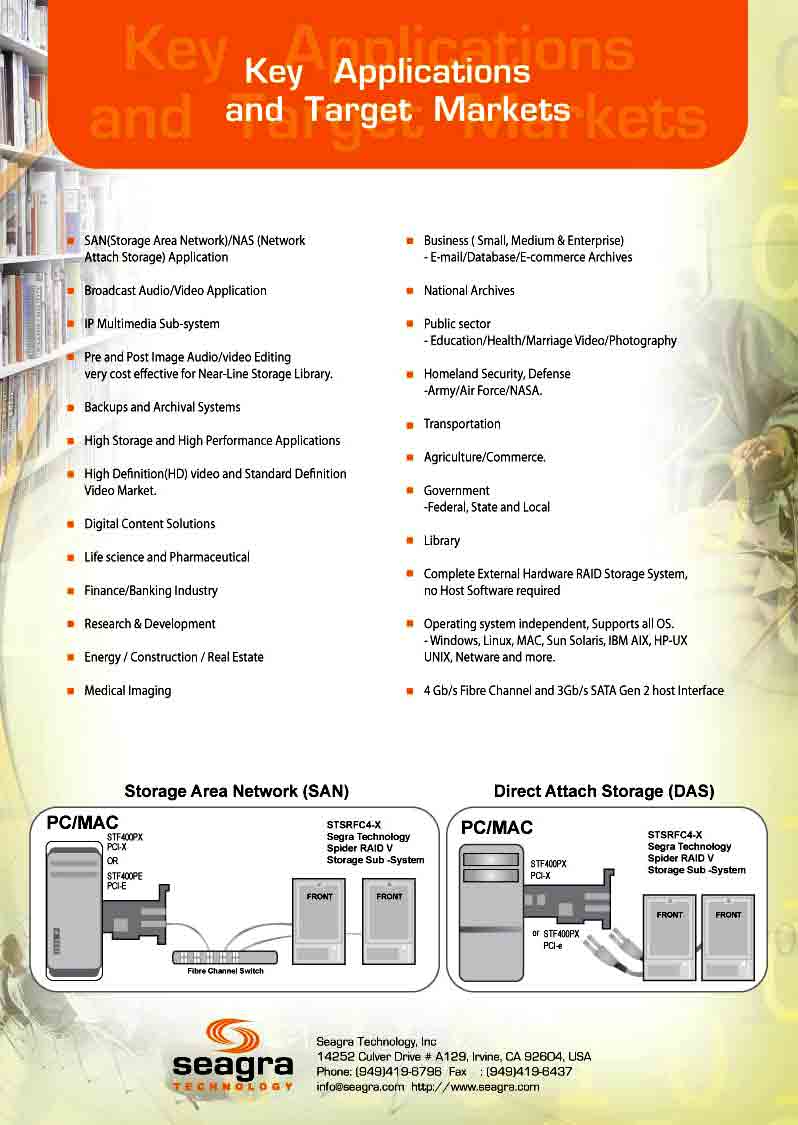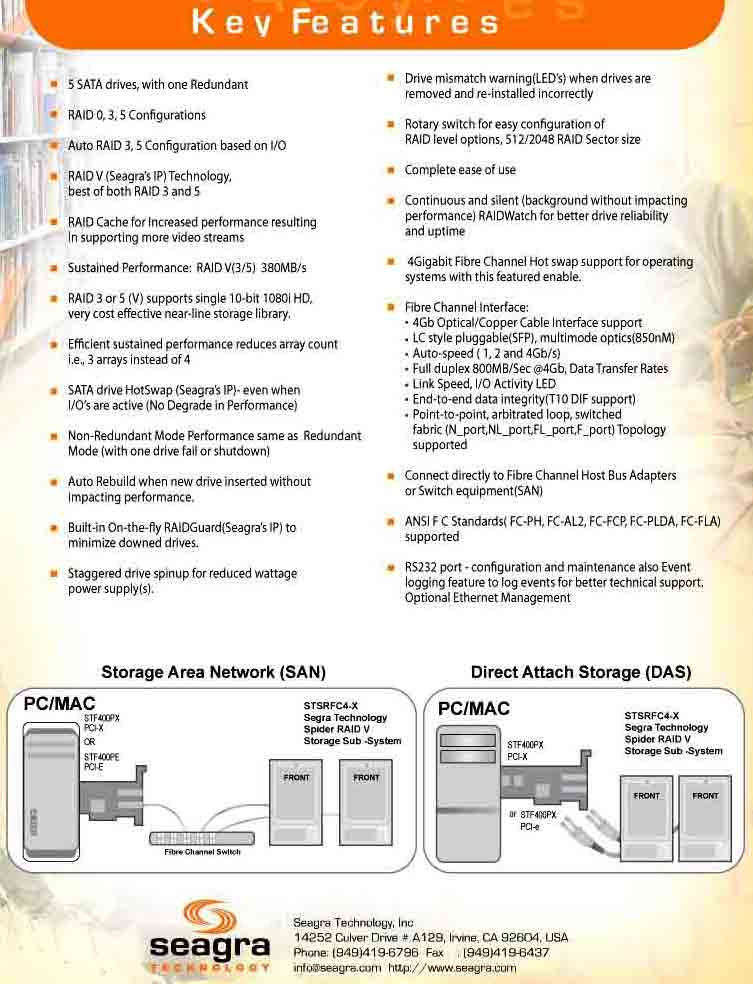 Our Highest Performance Stripped Disk Array: STSR-X RAID V disk arrays feature a fast single 4G fibre Channel interface and support the leading professional digital content creation systems -from DV to HD and everything in between.