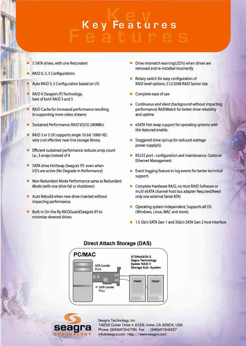 Key Features RAID 0, 3,5 Configurations Auto RAID 3,5 Configuration based on I/O Complete ease of use.